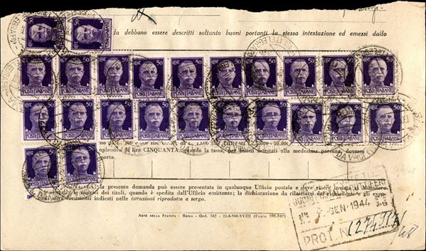 Roma 10.1.44 - frammento di Modulo Amministrativo con tassa di duplicazione (251 ventiquattro)