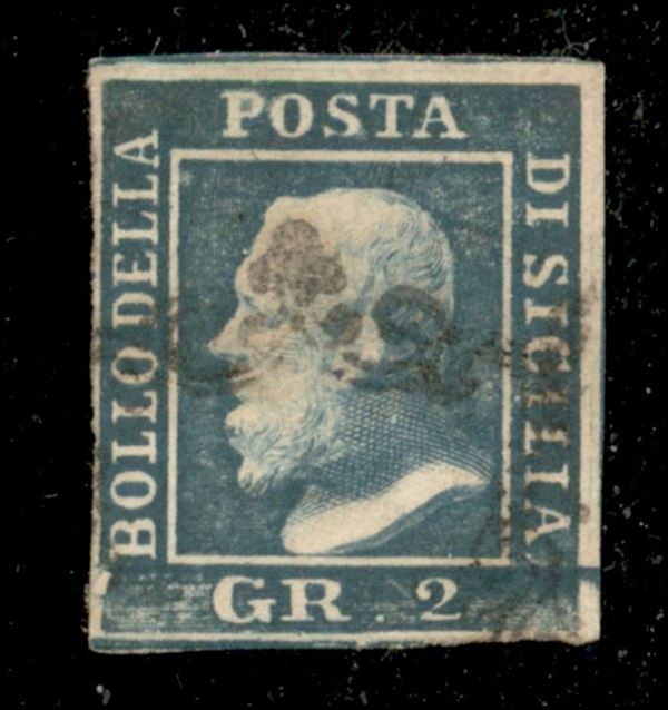 1859 - 2 grana azzurro verdastro (8b) fresco e con ottimi margini - usato