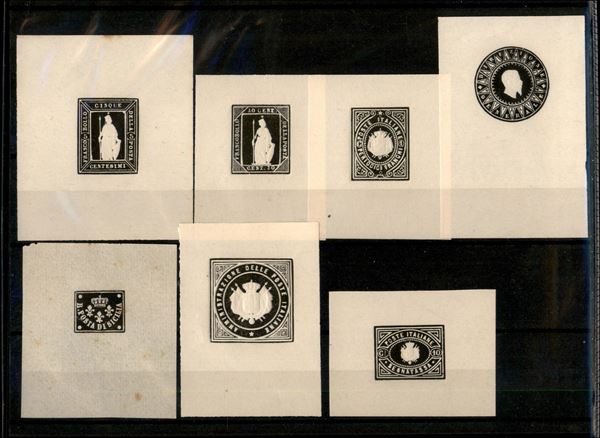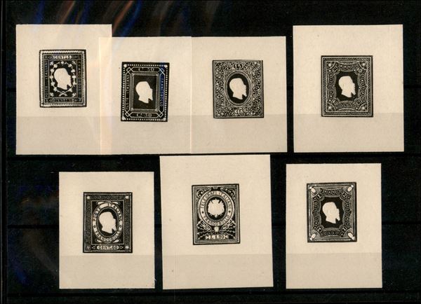1862/1864 - Saggi Giuseppe Re + altri - insieme di 14 pezzi diversi - facsimili in nero su foglietto d'avorio - nuovi senza gomma - bell'insieme