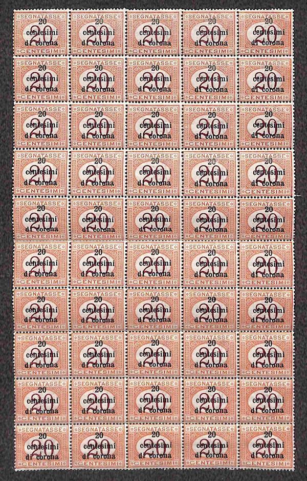 1919 - Blocco di cinquanta del 20 cent su 20 cent (3) - gomma integra
