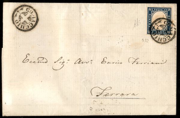 20 cent azzurro grigio (15Cc) su lettera da Comacchio a Ferrara del 27.7.61 - ex coll. Provera - Diena