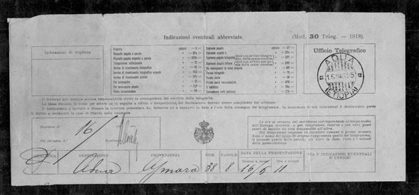 Adua (Etiopia) 16.5.25 - Annullatore su telegramma Mod.30 da Asmara - molto raro