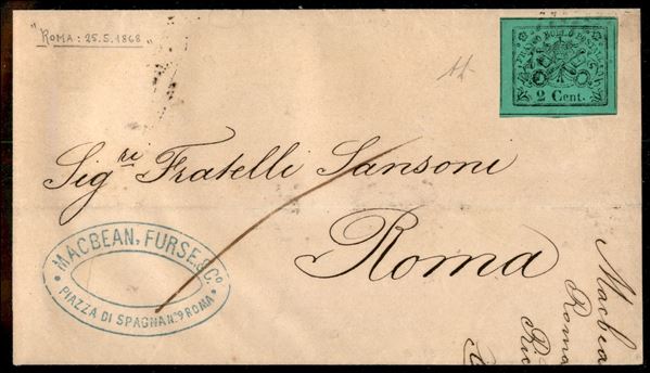 Bellissima circolare da Roma 25.5.68 per cittą affrancata con 2 cent (13) con ottimi margini - isolato - ex coll. Provera - AD