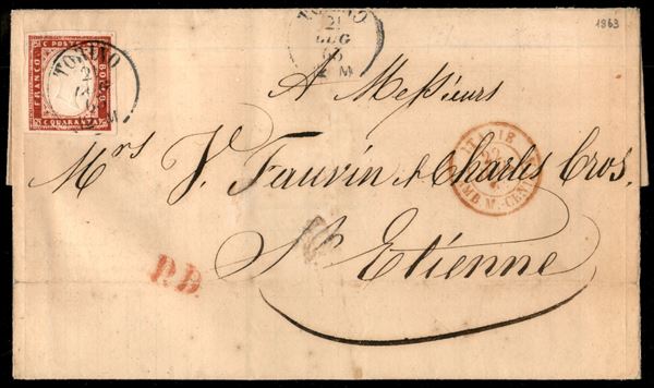 Fresca lettera da Torino 21.7.63 per la Francia recante 40 cent (16Eb) molto bene marginato - ex coll. Provera