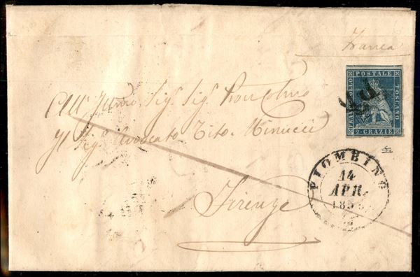 PD di Piombino (P.ti 10) unico annullatore di 2 crazie (5) ben marginato su lettera per Firenze del 14.4.1853 - L. Gazzi