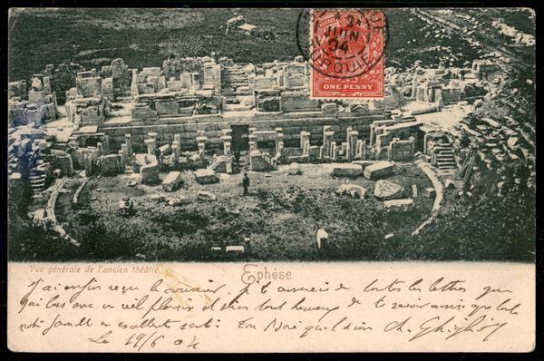 1 penny (113A) su cartolina da Smirne a Marsiglia del 21.6.04
