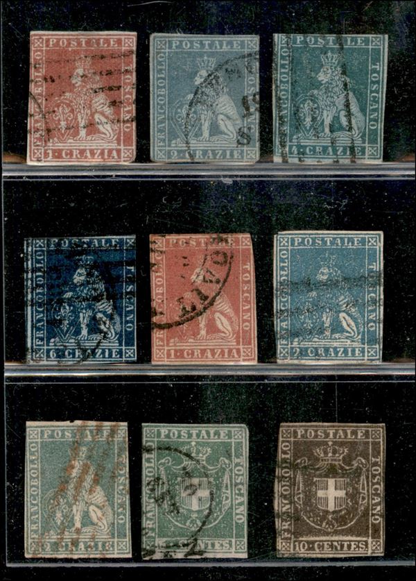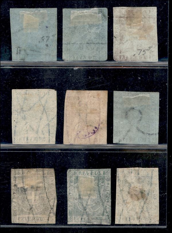 1851/1860 - 9 valori usati (4/7 + 12/13 + 13 + 18/19) - insieme di seconda scelta - da esaminare