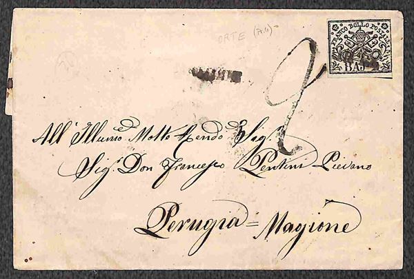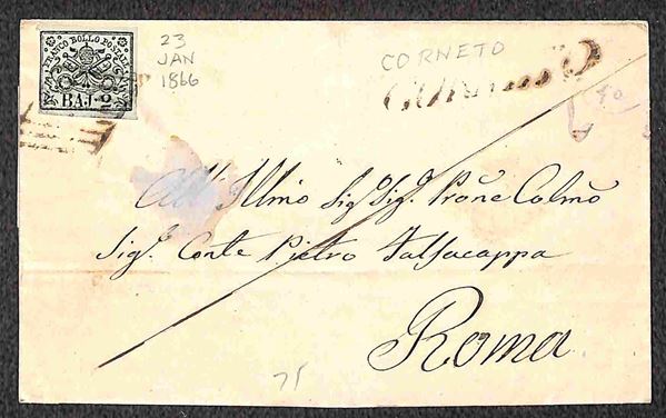 1855/1868 - Insieme di tre lettere affrancate con 1 baj + due lettere con 2 baj - non ben marginati ma con alcuni interessanti annulli - da esaminare