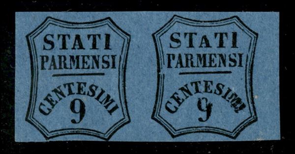 1857 - Non Emessi - Coppia del 9 cent (2A/2Ab - segnatasse giornali) - esemplare di destra con A rotta - gomma integra - cert AG