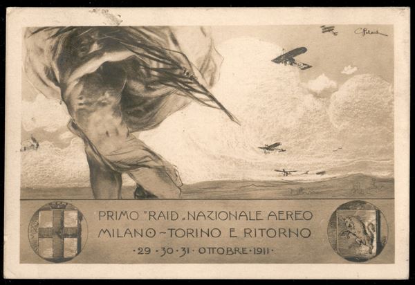 1911 (29 - 31 ottobre) - I° Raid Aereo Milano Torino e ritorno - una cartolina per l'andata ed una per il ritorno - ottimo insieme con testo interessante - Longhi 543 + 550