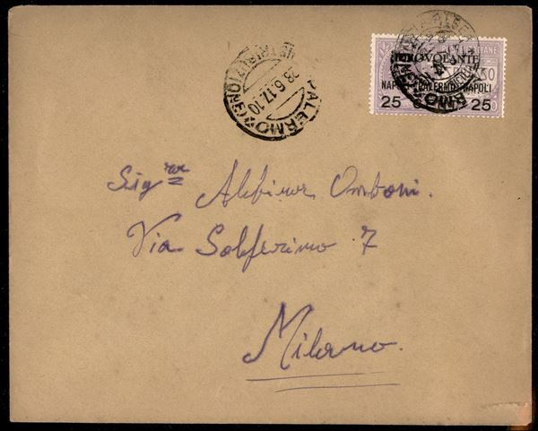 1917 (28 giugno) - Primo Volo Napoli Palermo con 25 cent su 40 (2) su busta per Milano - Longhi 861