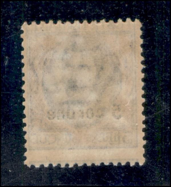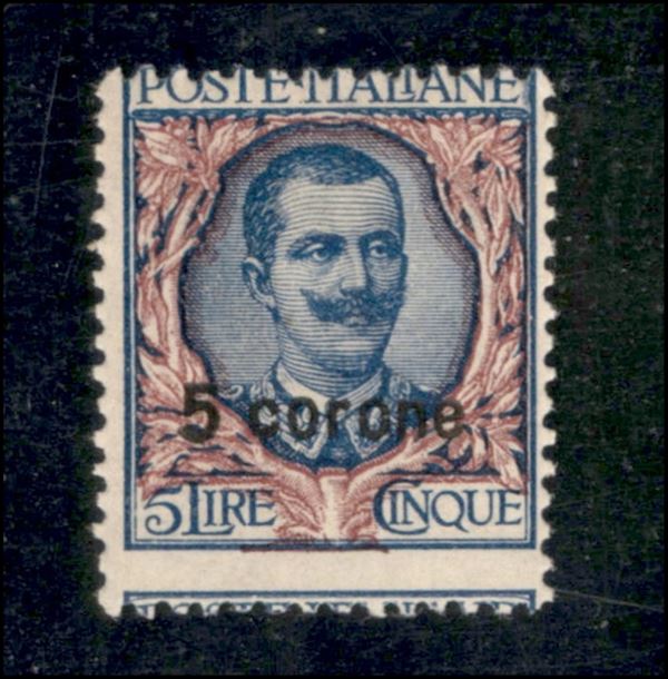 1922 - 5 corone su 5 lire Floreale (7ef) - dentellatura spostata in basso - gomma integra