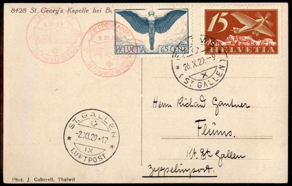 1929 (2 novembre) - Zeppelin - Schweizerflug - cartolina da Flums a St. Gallen del 29.10.29