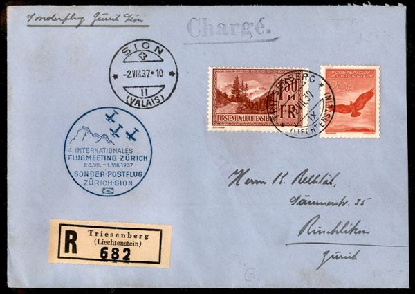1937 (22 luglio) - Zurigo Sion - aerogramma raccomandato da Triesenberg a Ruschlikon del 22.7.37