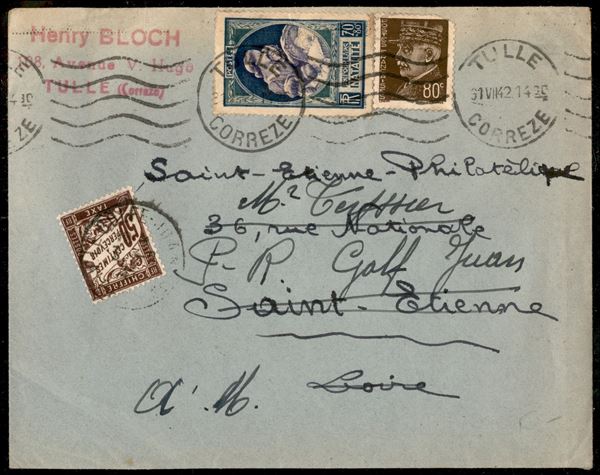 1942 (31 luglio) - busta da Tulle a S. Etienne - tassata