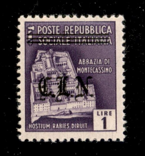 1945 - 1 lira soprastampato (CEI/Unificato 11A) - soprastampa in nero - non emesso - gomma ntegra - Raybaudi