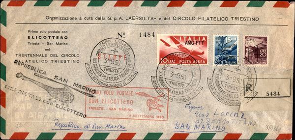 1950 (3 settembre) - Primo Volo Postale con Elicottero - aerogramma da Trieste per S. Marino