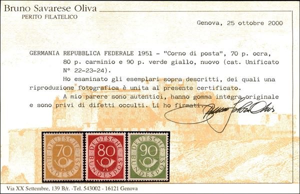 1951 - Corno di Posta (123/138) - serie completa - gomma integra - cert Oliva (2200)