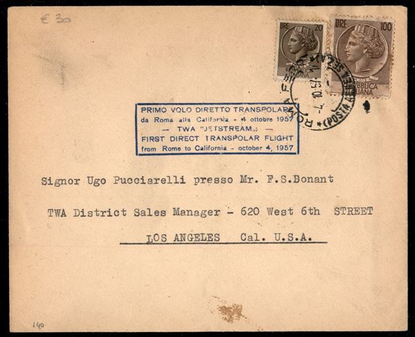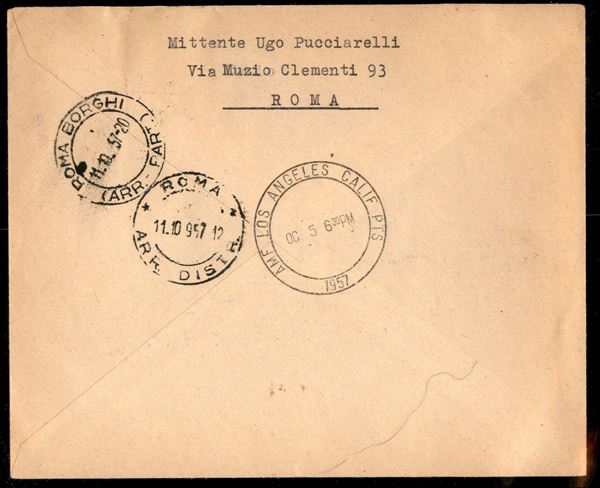 1957 (4 ottobre) - Aerogramma Primo Volo Diretto Transpolare da Roma a Los Angeles