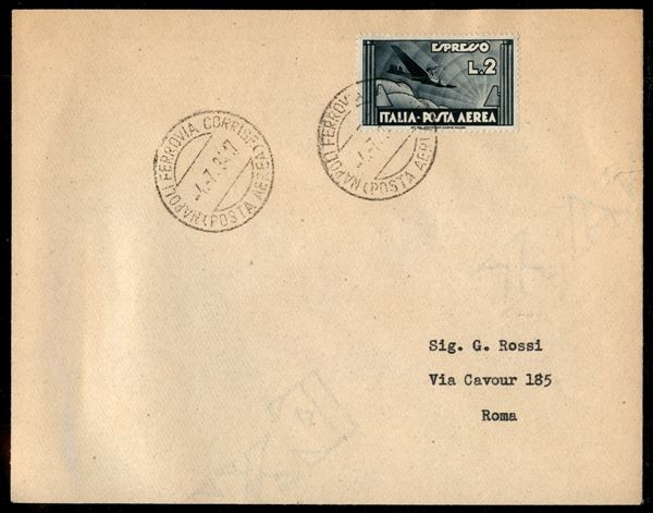 2 lire Aeroespresso (73 - Aerea) isolato su aerogramma da Napoli a Roma del 4.7.34
