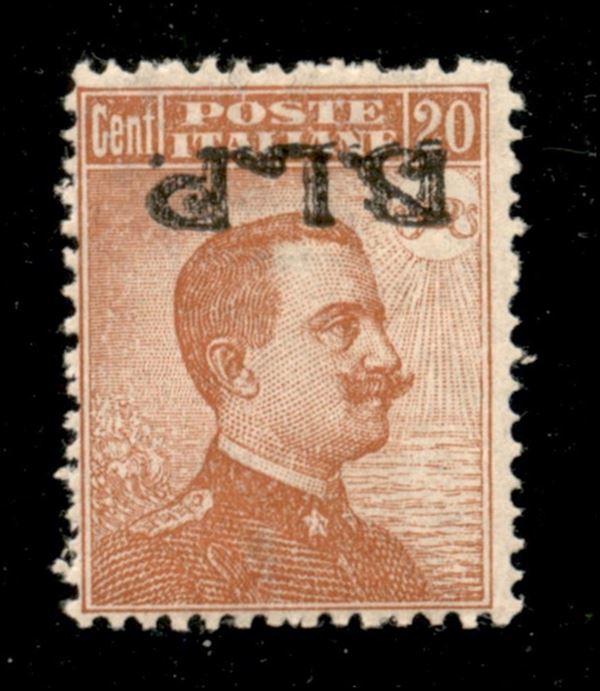 20 cent (15c) con soprastampa nera capovolta - gomma originale con invisibile traccia di linguella - ben centrato - Sorani