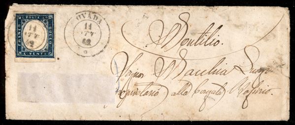 20 cent (15Dd - cobalto grigio) - bustina da Ovada a Montilio del 11.10.62 - cert. AG (3.500)