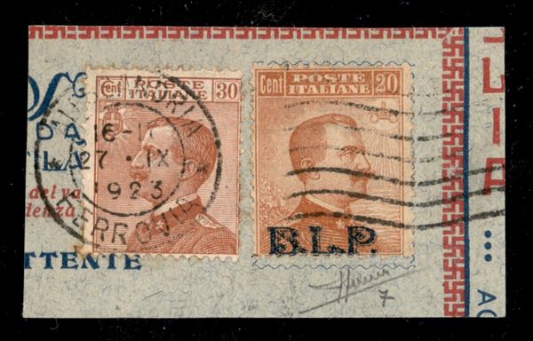20 cent BLP (7) + complementare (127) usati su frammento di busta da Alessandria del 27.9.23