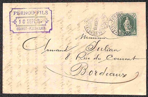 25 cent Helvetia (41) isolato su lettera da Neuchatel a Bordeaux del 10.9.84
