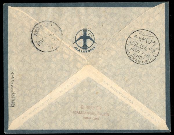 Aerogramma affrancato con 60 + 50 cent Aerea (2 + 4) + complementare da Bengasi a Atbara (Sudan) del 12.12.35