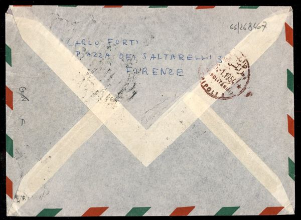 Aerogramma affrancato con due 60 lire Verdi (679) da Firenze per Tripoli del 23.1.54