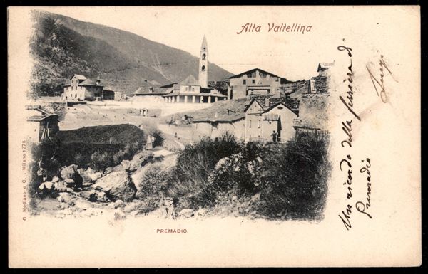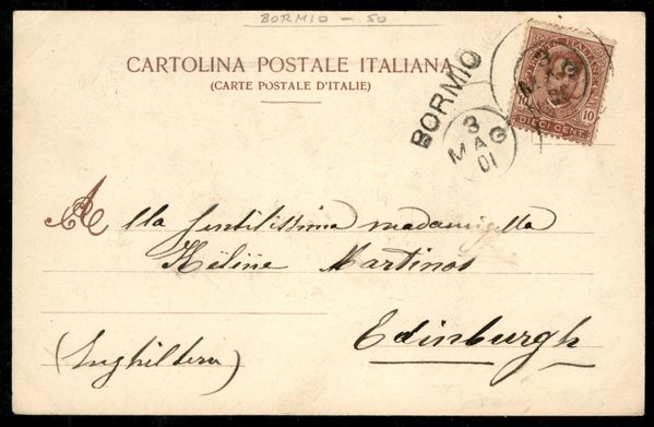 Bormio (SO) + muto a data annullatore - cartolina (Ferriera di Premadio) affrancata (60) per Edimburgo/Inghilterra del 3.5.01
