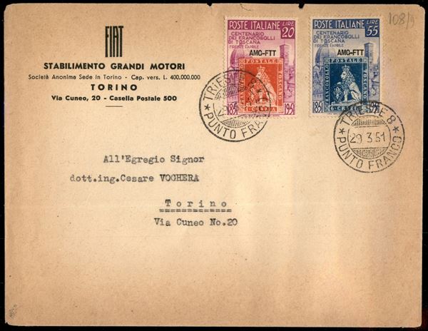 Busta affrancata con Francobolli Toscana soprastampati (108/109) - serie completa - da Trieste per Torino del 29.3.51