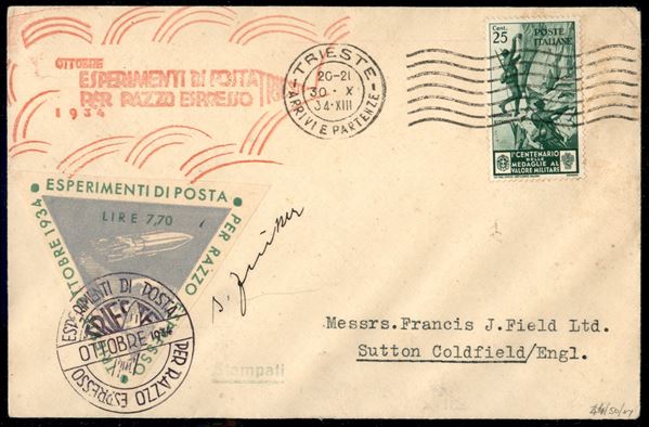 Busta per gli esperimenti di Posta Razzo - Trieste 30.10.34 - Zucker