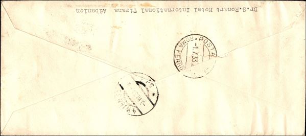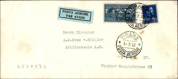 Busta viaggiata con il primo volo Tirana Roma per Vienna - 1.7.33 - affrancata in tariffa - rara