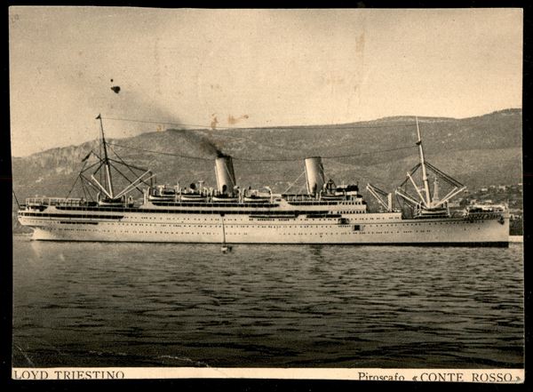 Cartolina del Piroscafo "Conte Rosso" affrancata con coppia orizzontale del 10 cent Imperiale + 50 cent + 5 cent perforato "T" (243 + 245 + 251) con annullamento di bordo per Tientsin (rara destinazione) del 16.1.39