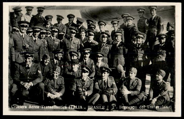 Cartolina fotografica Crociera Aerea Italia/Brasile "Gruppo dei Transvolatori" - Ed. A. Traldi Milano - nuova