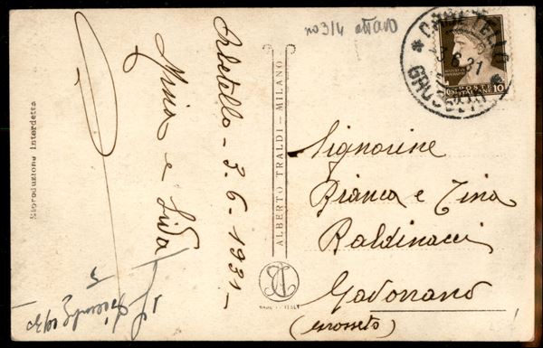 Cartolina fotografica Crociera Aerea Italia/Brasile "La notte della partenza (17 dicembre) all'idroscalo di Orbetello" - Ed. A. Traldi Milano - viaggiata 3.6.31