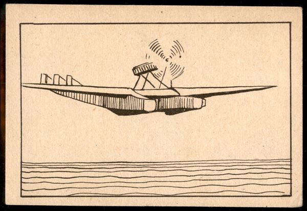Cartolina illustrata con idrovolante stilizzato - Ed. Arti Grafiche Monza - nuova