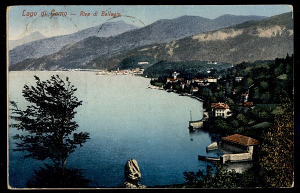 Cartolina illustrata da Bellagio affrancata con 10 cent Leoni (82) con annullo natante Como-Colico del 2.9.16 per Milano - ex coll. Provera