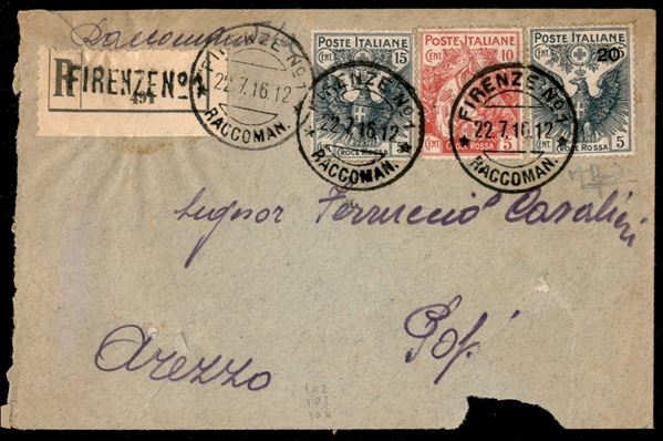 Croce Rossa (102/104) - raccomandata da Firenze a Poppi del 22.7.16 - busta strappata in basso - Alfani (420)