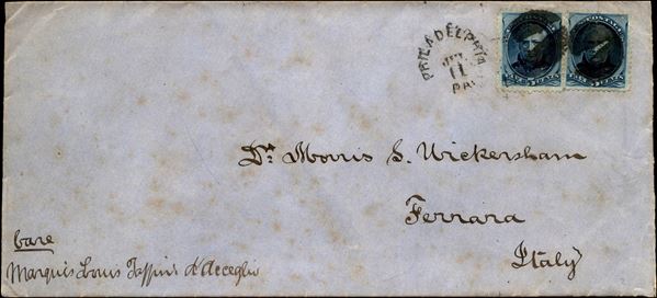 Due 5 cent (48) su busta da Philadelphia a Ferrara del 11.7.1880