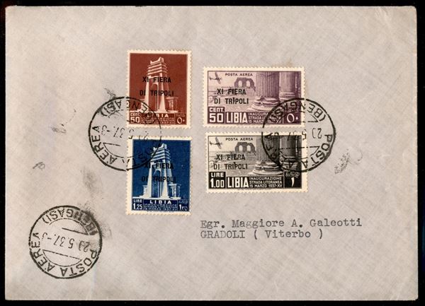 Fiera di Tripoli (142/143 + Aerea 32/33) - emissione completa su busta da Bengasi a Viterbo del 20.5.37