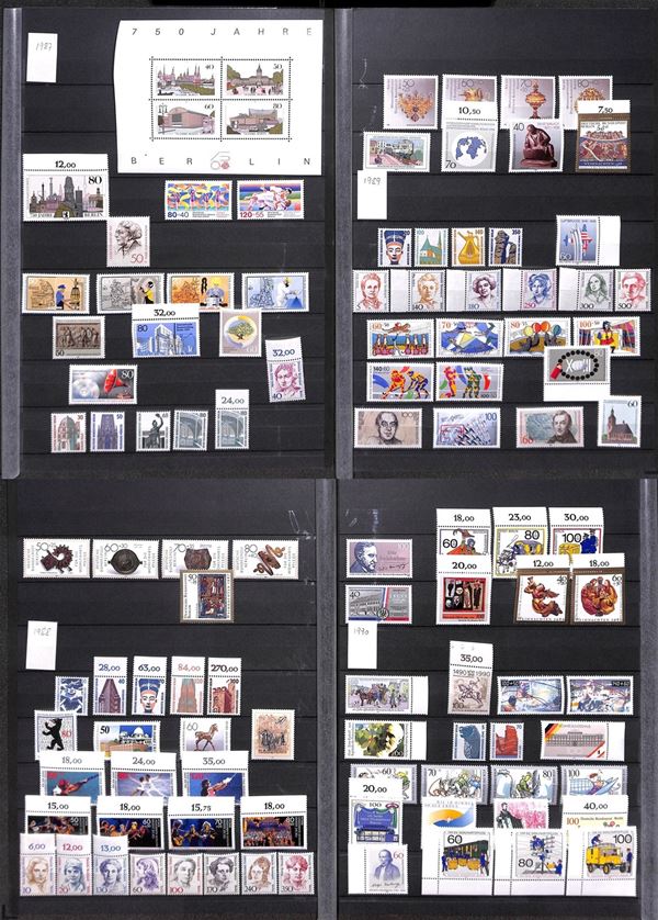 GERMANIA - BERLINO OVEST - 1987/1990 - Collezione completa di valori e foglietti emessi nel periodo in 2 pagine di raccoglitore - gomma integra (250+)