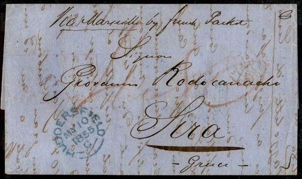 Huddersfield (10.5.1855) - lettera per Sira - tassata