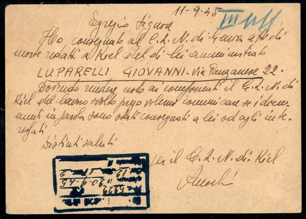 Intero postale da 30 cent Mazzini (C112) ricoperto con 20 cent + 1 lira (537 + 540) da Sestri Ponente a Ariano Irpino del 12.9.45