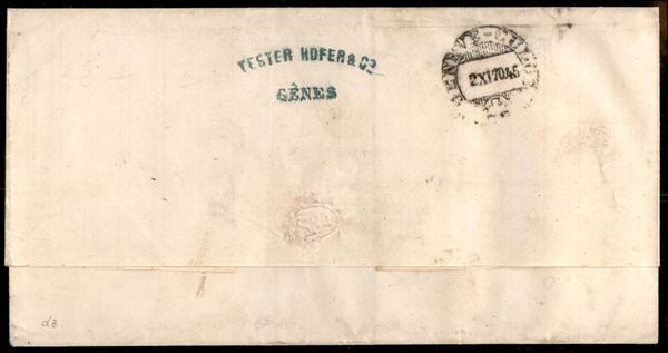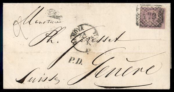Involucro di lettera affrancata con 60 cent V. Emanuele II (T21) da Genova per Ginevra del 31 ott. 70