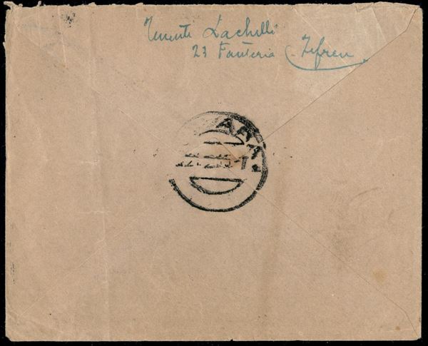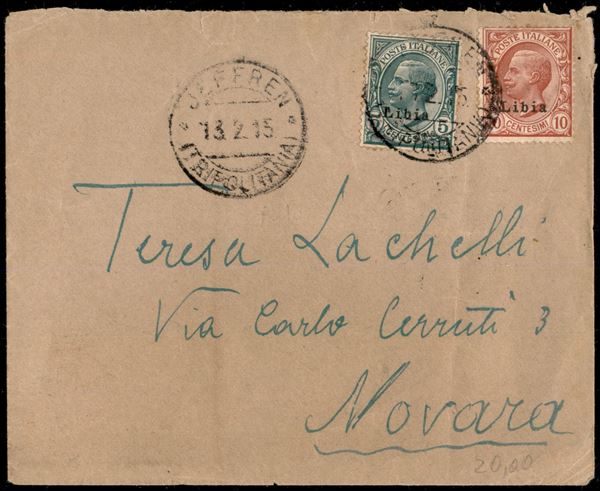 Jeffren (Tripolitania) 13.2.15 - 5 cent (3) + 10 cent (4) su busta per Novara