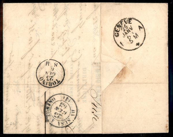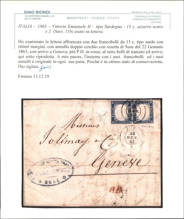Lettera affrancata con coppia orizzontale del 15 cent (11) da susa per Ginevra del 22. gen. 63