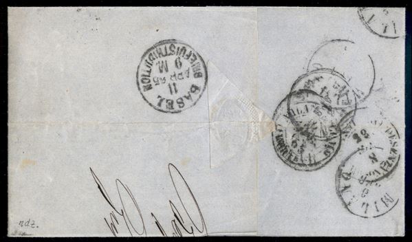 Lettera affrancata con due esemplari del 30 cent (L19 + L19a) di due tonalità diverse da Bergamo per Basilea del 8 apr. 65