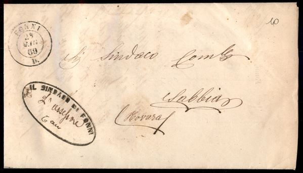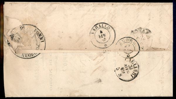 Lettera tra Comuni - Da Fonni (Nuoro) a Sabbia (Vercelli) con annulli di transito Cagliari Nuoro e Rapallo del 29. mag. 69